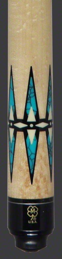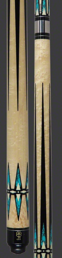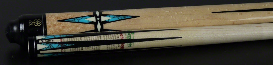 McDermott Pool Cue model G606 is constructed with a Birdseye Maple forearm and butt sleeve. This cue has 24 black urethane, turquoise, and bone urethane forearm/handle points inlay design. Completing the McDermott G605 is a  No-Wrap section and McDermott G-Core Shaft.